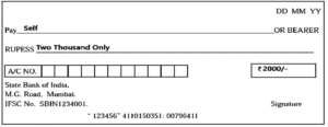 - The word “self” is written as payee and “bearer” is not cancelled.