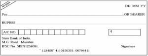 Meaning : A cheque is a written order given by an account holder to the bank.