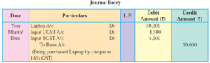 Example 1: Purchased Laptop from Jalaram and Company worth ₹ 50,000 at 18% GST and amount paid by cheque