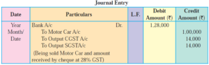 Example 2: Sold Motor Car for ₹ 1,00,000 at 28% GST and amount received by cheque