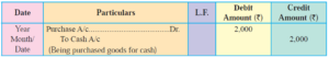 Example : Purchased goods for cash from Mr. Sonu worth ₹ 2,000