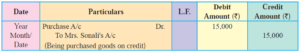 Example : Purchased goods from Mrs Sonali worth ₹ 15,000 on credit.