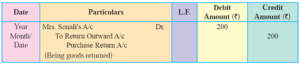 Example : Returned Goods worth ₹ 200 to Mrs. Sonali