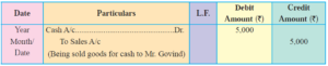 Example : Sold goods worth ₹ 5,000 for cash to Mr. Govind.