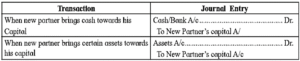 At the time of admission, new partner is required to bring in cash or/and other assets, if any, as his capital, to get rights in the assets and definite share in the future profit of the firm.