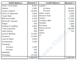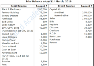 (1) Amitbhai and Narendrabhai are in Partnership Sharing Profits and Losses equally. From the following Trial Balance and Adjustments given below, you are required to prepare Trading and Profit and Loss Account for the year ended 31st March, 2019 and Balance Sheet as on that date.