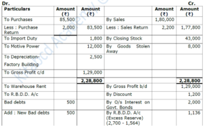 (1) Import duty, Motive power and Depreciation on Factory Building are recorded on the Debit side of Trading A/c.