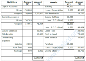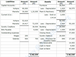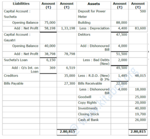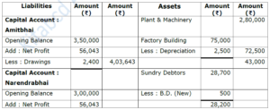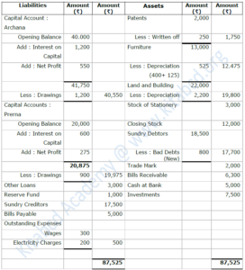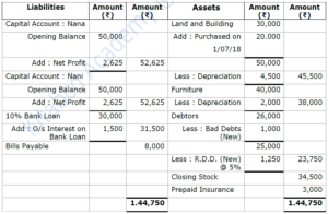 - The balances of the Current Accounts are already given. So, the total fixed capital is directly shown on the Liabilities side of the Balance Sheet.