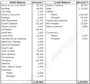 (2) From the following Trial Balance of M/S Mitesh and Mangesh, you are required to prepare Trading and Profit and Loss Account for the year ended 31st March, 2019 and Balance Sheet as on that date.