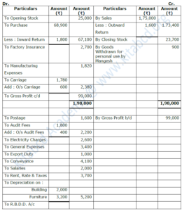 Mangesh = 1% on Gross Profit = \(\frac{1}{100}\) x 99,000 = 990