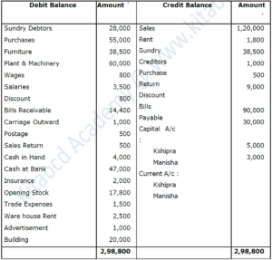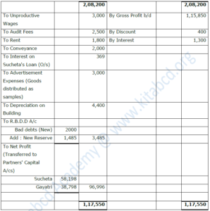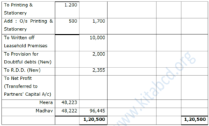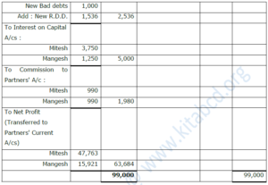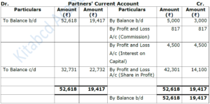 (3) Here, on gross profit calculate 1% commission for partners and record it to Profit and Loss A/c and in Current A/cs. Commission payable to each partner = \(\frac{1}{100}\) x Gross profit = \(\frac{1}{100}\) x 81,700 = ₹ 817.