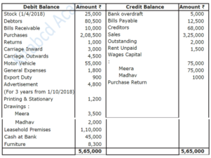 (4) From the following Trial Balance of M/S Meera and Madhav. Prepare Trading and Profit and Loss Account for the year ended 31st March, 2019 and Balance Sheet as on that date.