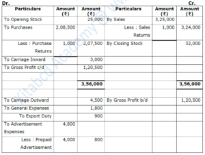 (3) Advertisement Expenses paid for 2 years from 01-01-2019. Up to 31-3-2019, 3 months Advertisement Expenses is calculated and written off to Profit and Loss A/c. It is calculated as below :