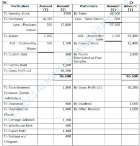 (1) Here only gross profit and net profit is to be find out. Therefore, Balance Sheet is not prepared.