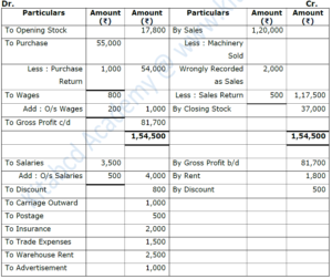 (1) Here, Profit and Loss Account and Balance Sheet are to be prepared. Therefore, Trading Account is not prepared. Gross profit (given) is recorded on Credit side of Profit and Loss Account.