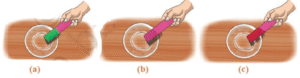 Question 3: Observe and analyse Figs. (a), (b) and (c), in which red rose extract paper strips are used. Label the nature of solutions present in each of the containers.