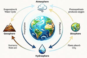 Life on Earth is sustained by the constant interaction between four major systems, or "spheres," which together regulate climate, cycle nutrients, and support all ecosystems.