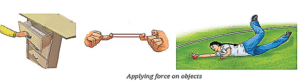- Bringing about a change in the shape of an object: Forces can deform objects, e.g. when you press an inflated balloon, stretch a rubber band, or roll out a chapati.