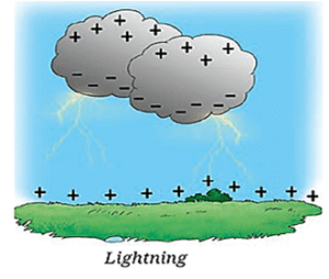 - Induction: The negatively charged bottom of the cloud causes the ground and objects below it (like trees and buildings) to become positively charged.