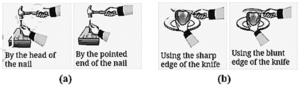 - A nail goes easily into wood with its sharp point but not with its flat head.