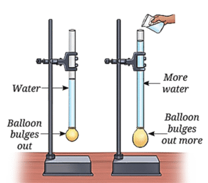 - If you add more water and increase the height, the pressure increases, and balloons bulge more.