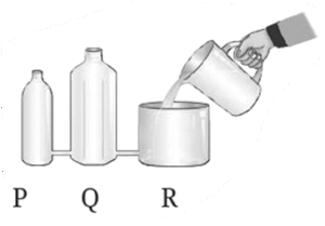 (i) Look at below Fig. carefully. Vessel R is filled with water. When pouring of water is stopped, the level of water will be ____________________.