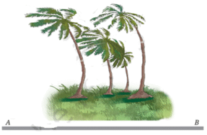 - The bending of trees due to wind, as shown in the figure suggest that wind is blowing in the direction from B to A. This suggests 'A' side is land.