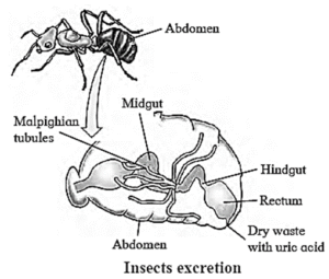 - In most of the insects, excretion takes place by a set of blind ended tubules called malpighian tubules.